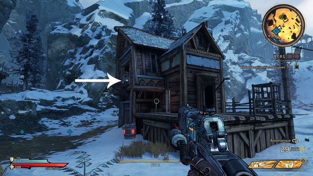 2. A l'endroit suivant (photos ci-dessous). Grimpez à l'échelle pour rejoindre la plateforme en hauteur.