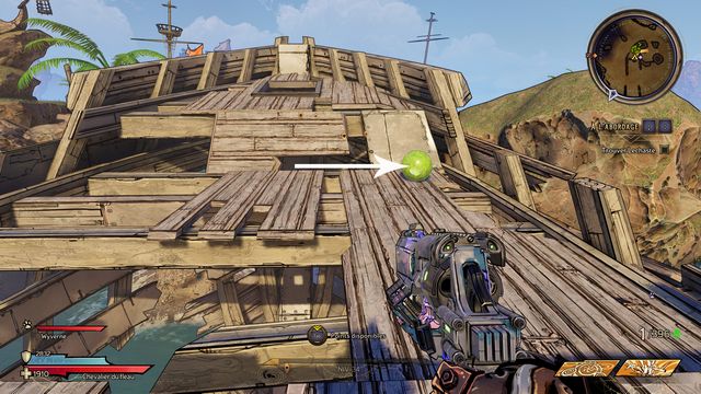 2. A l'endroit suivant (photos ci-dessous). Rejoignez le bout de la proue, puis sautez à gauche sur la plateforme.
