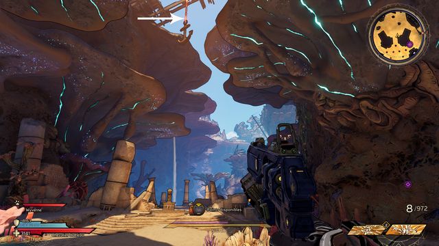 Vous avez un téléporteur qui vous y emmène. Revenez légèrement sur vos pas, vous verrez un homme accroupi sur le bord de la falaise. Il y a un téléporteur dans le vide. Sautez dedans pour rejoindre le sommet