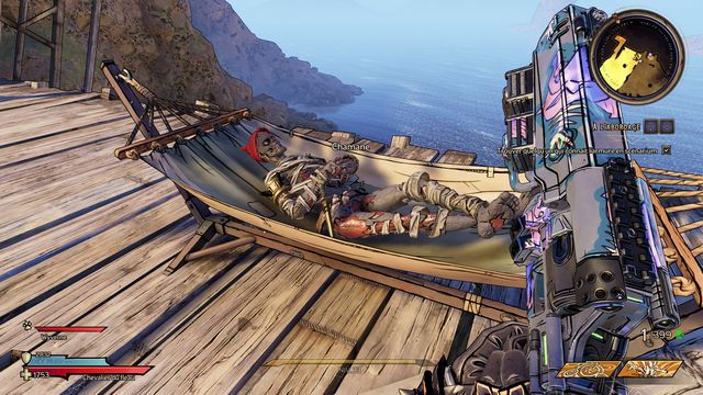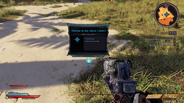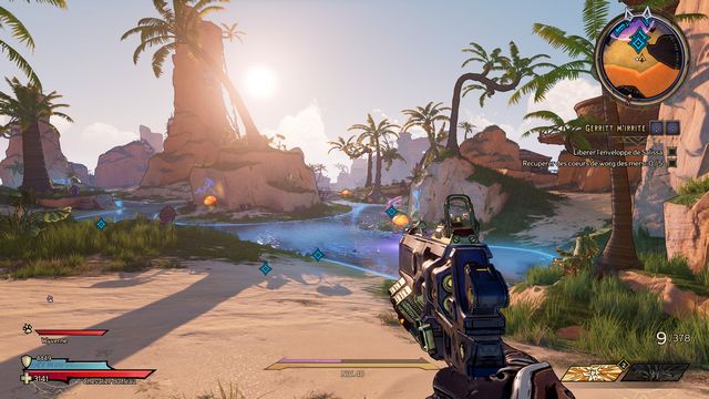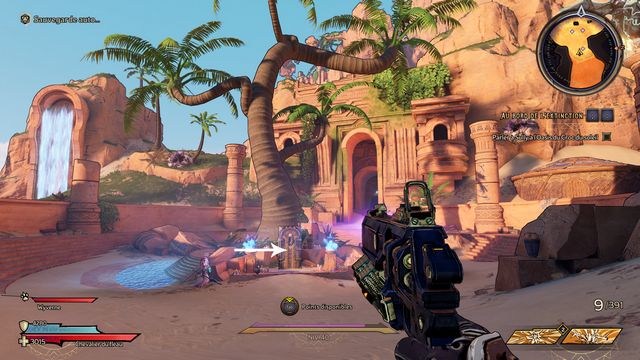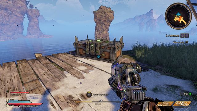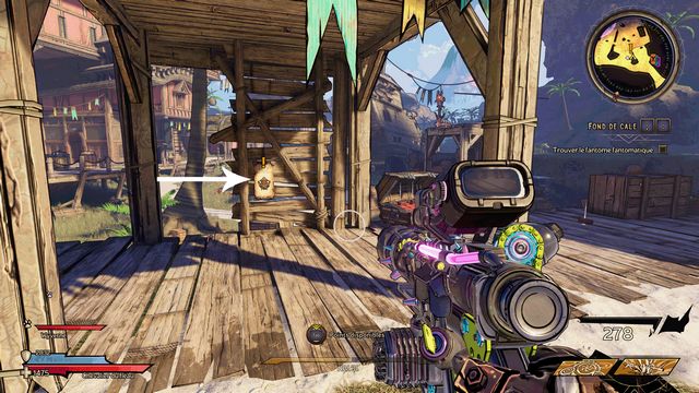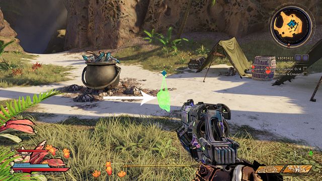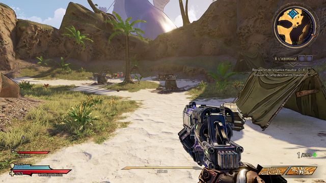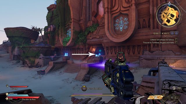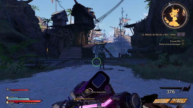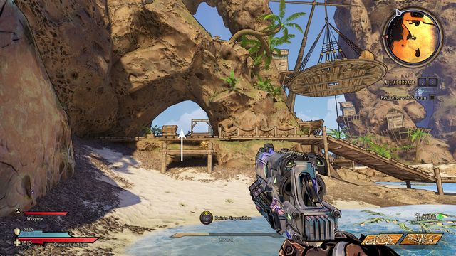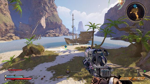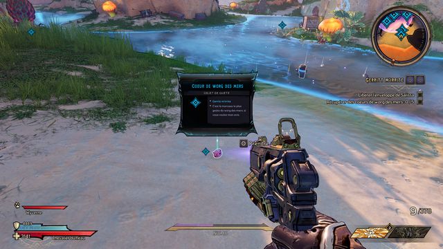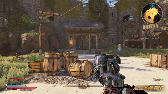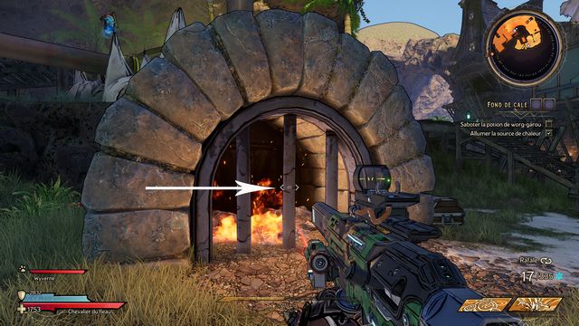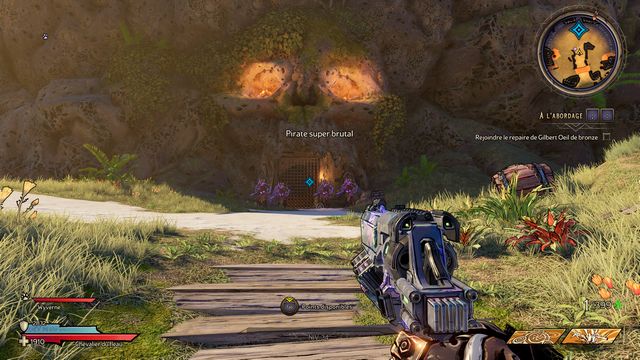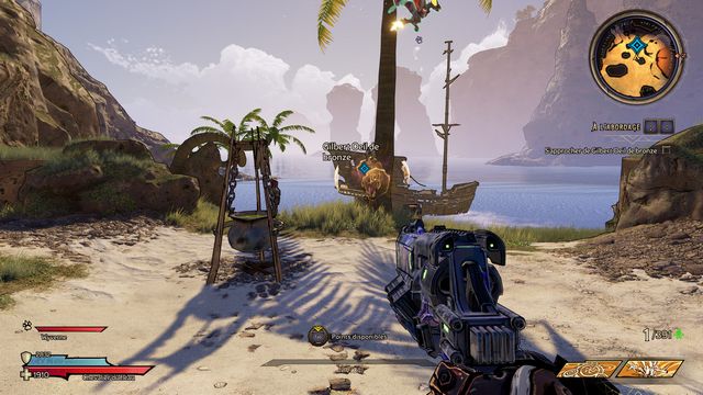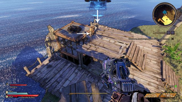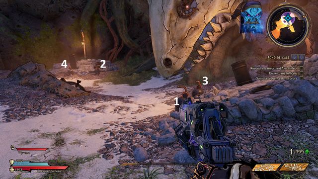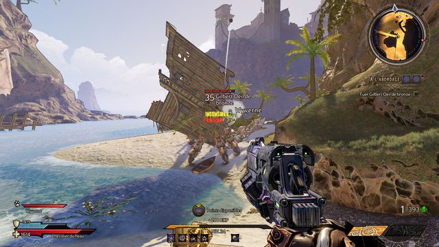 Nettoyez la zone derrière la grille puis rejoignez "Gilbert Oeil de Bronze" (photo ci-dessous à gauche). Préparez-vous au combat ! Restez sur les rochers, vous pourrez tirer tranquillement sur la plage. Une