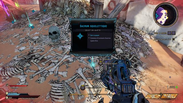 Tuez tous les squelettes qui reviennent à la vie et récupérez "Le Sacrum Squelettique" au sol (photo ci-dessous à gauche). Récupérez ensuite "Le Sacrum Squelettique Brutal" (photo ci-dessous à droite).