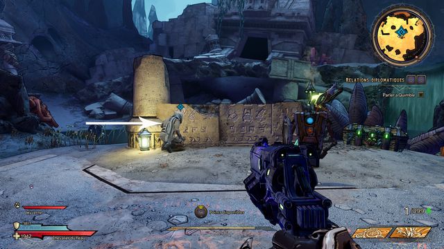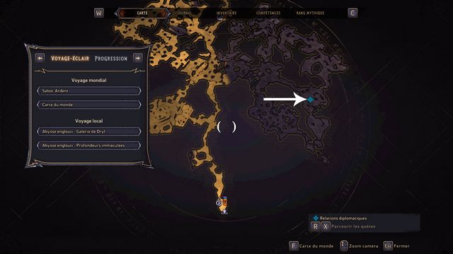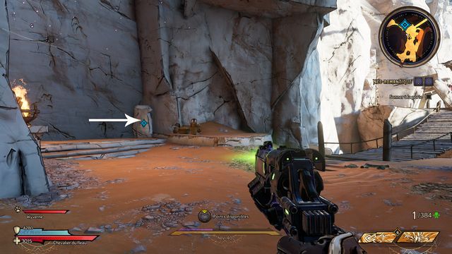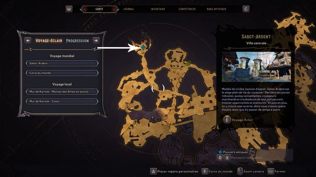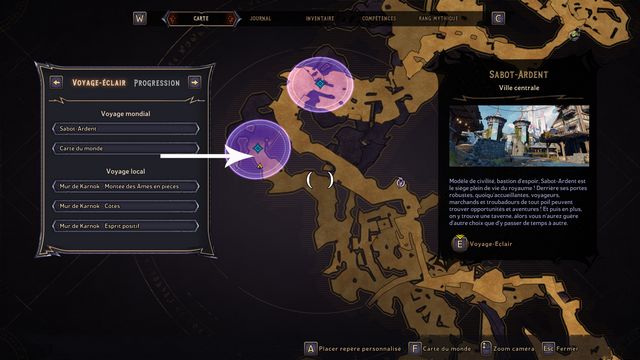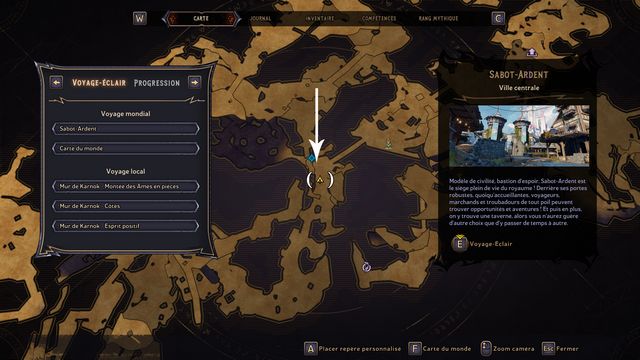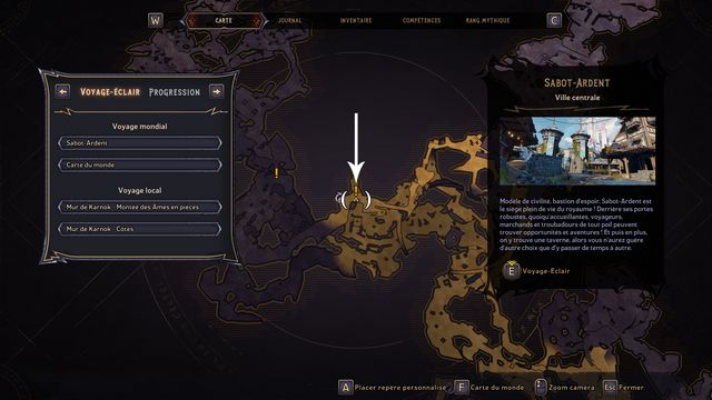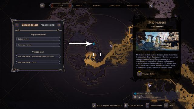 Entrez au "Mur de Karnok" sur la carte du monde. Vous arrivez à une relique (photo ci-dessous à gauche), ramassez-la. Elle fait apparaître le fantôme de Mâtard. Mâtard débloque l'accès au jumper (photo ci-dessous