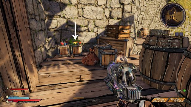 Allez à la cuve et cliquez dessus pour y placer le tonneau (photo ci-dessous à gauche). Tirez sur le tonneau pour le faire exploser (photo ci-dessous à droite).