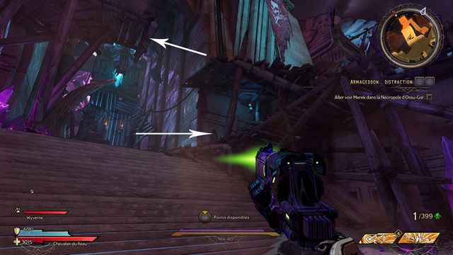 Grimpez sur l'échafaudage (photo ci-dessous à gauche) et récupérez la potion de magie (photo ci-dessous à droite).