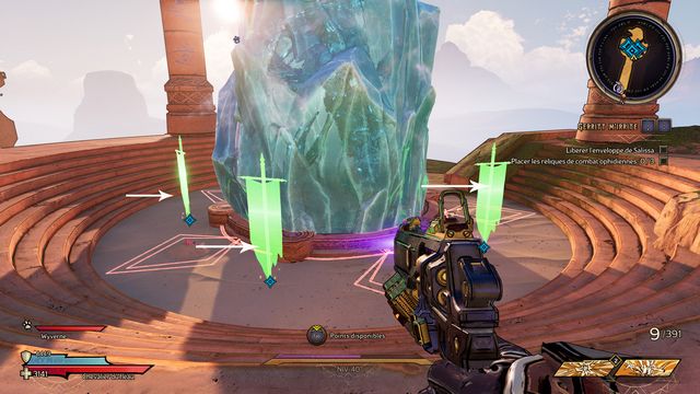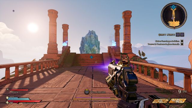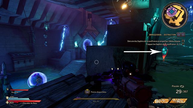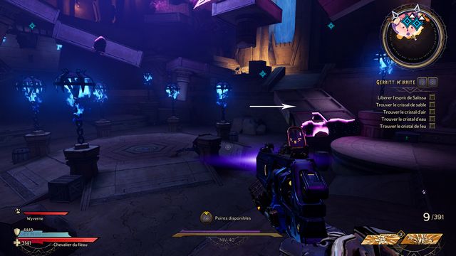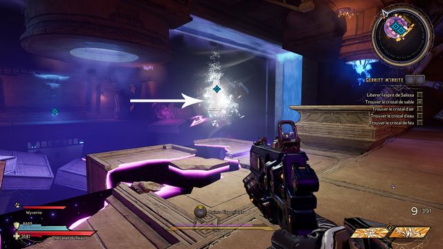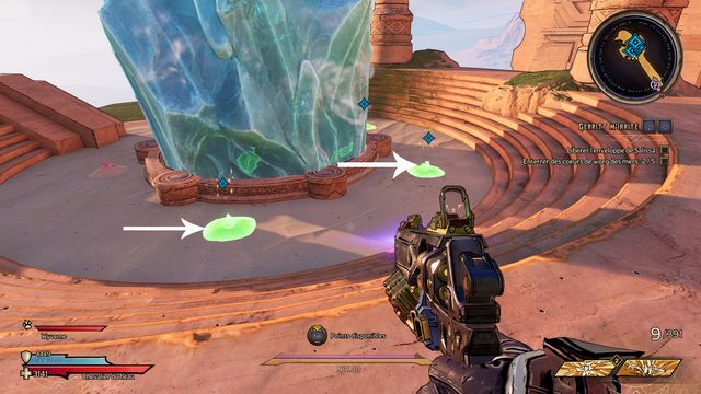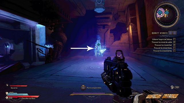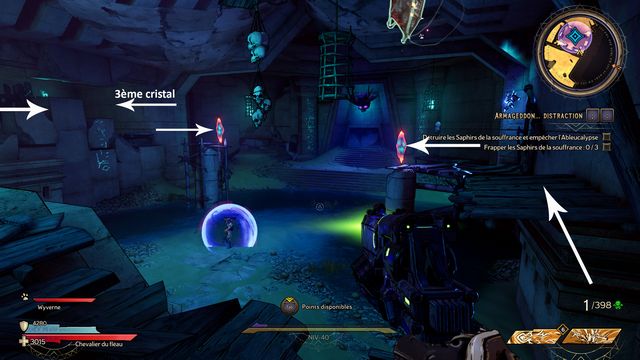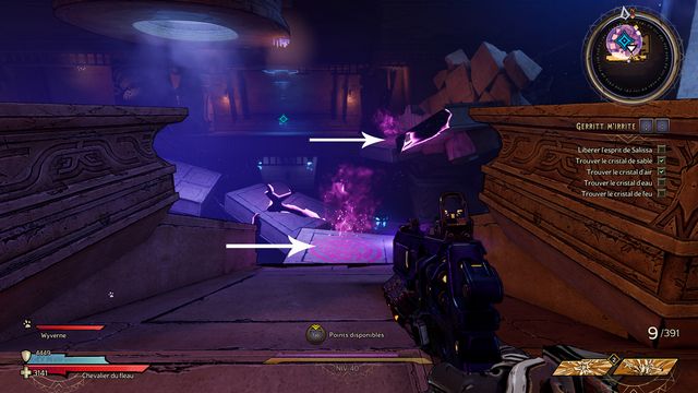 Il y a 3 cristaux à détruire. Vous ne pouvez les détruire qu'au corps à corps (photo ci-dessous à gauche). Le 3ème est derrière le mur de pierre, vous y accédez en sautant sur les rebords (photo ci-dessous à