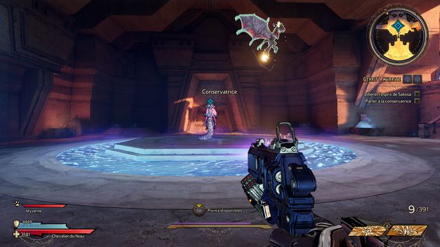 du pilier. Parlez à Dryxxl. Dryxxl peut invoquer en permanence le "Seigneur de l'Effroi", si vous avez besoin d'armes, n'hésitez pas à lui reparler.