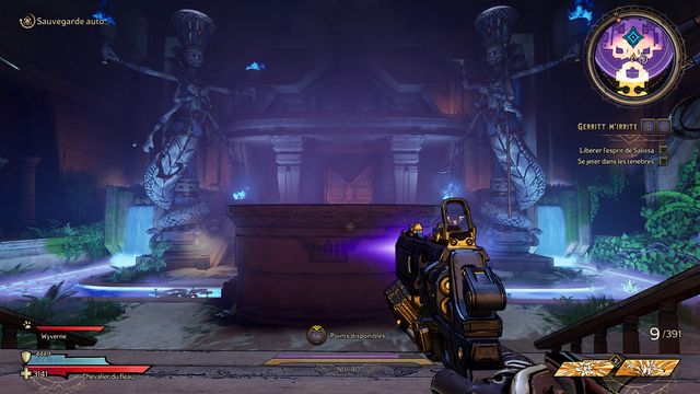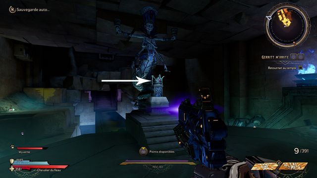 "Seigneur de l'Effroi". Autant vous dire que les vagues d'ennemis sont beaucoup plus compliqué que ce mini boss. Rien de spécial pour lui. Prenez n'importe quelle arme, elle fera l'affaire. Récupérez l'arme au centre