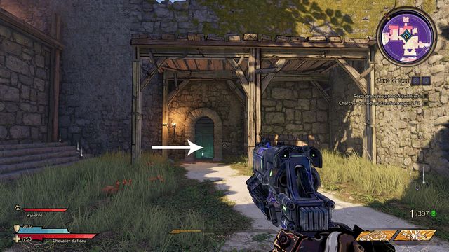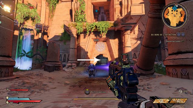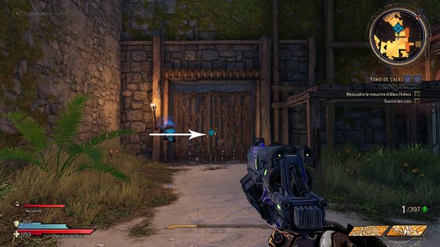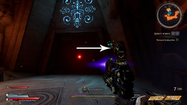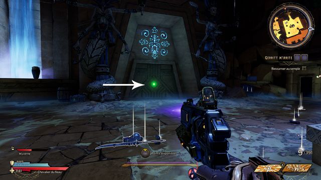 indiqué sur la photo (photo ci-dessous à gauche). Vous ouvrez la porte. Suivez Dryxxl de nouveau. Approchez-vous de la porte suivante pour faire venir Dryxxl. Il manque les clés (photo ci-dessous à droite).