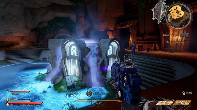 Gerritt ouvre une nouvelle porte. Sautez de la cascade en contrebas (photo ci-dessous à gauche). Rejoignez la zone suivante (photo ci-dessous à droite).