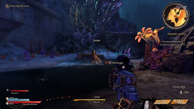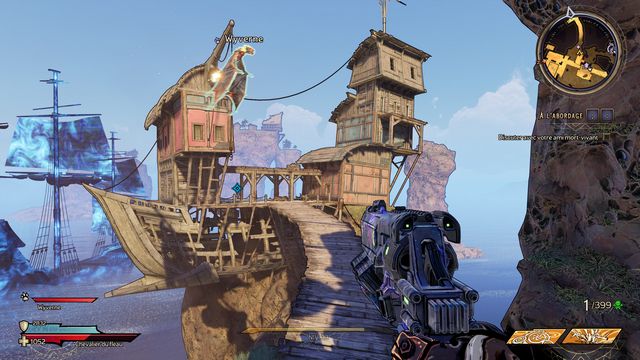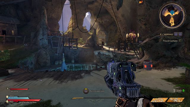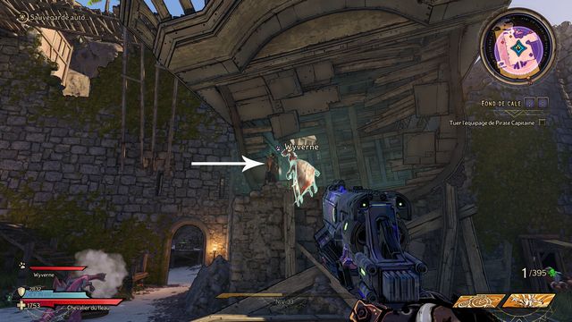 Vous faites face au "Capitaine Pirate" (photo ci-dessous). N'hésitez pas à sauter sur les plateformes pour éviter les coups. Utilisez une arme "puissante contre les armures". Le mini boss va se transformer en gros