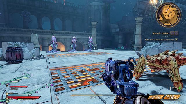 Il vous demande de détruire 4 coques-parleurs (photo ci-dessous à gauche). Tirez juste dessus pour les détruire. Retournez voir les soeurs sineuses (photo ci-dessous à droite).