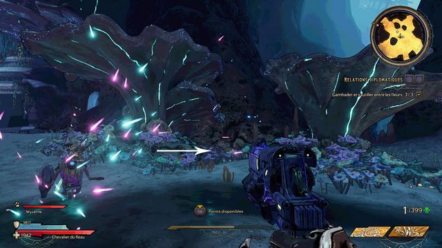 Tuez les nagas puis suivez Claptrap. Marchez et sautez entre les 2 grosses fleurs (photo ci-dessous à gauche). Tuez les 2 prochaines nagas et suivez Claptrap. Frappez 3 fois Claptrap (photo ci-dessous à droite).