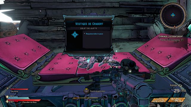 Terminez l'affrontement puis ouvrez le coffre de fin (photo ci-dessous à gauche). Vous trouverez à l'intérieur "Les Vestiges de Crabert" (photo ci-dessous à droite).