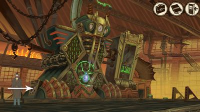 Redescendez à l'échelle puis cette fois, cliquez sur la console et choisissez "Increase Juicer power". La machine est désormais à sa puissance maximum. Remontez à l'échelle de droite puis montez l'escalier (photo