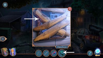 Cliquez sur l'escalier du bateau (photo ci-dessous à gauche). Cliquez sur les planches pour les remettre à leurs places (photo ci-dessous à droite).