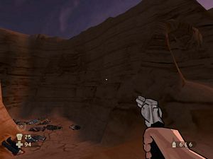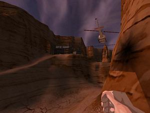 Avancez dans le canyon. Juste derrière votre crash vous avez un point d'ancrage pour votre grappin (photo ci-dessous à gauche).