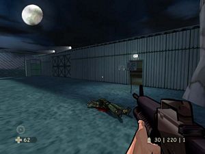 Vous débutez dans les égoûts. Allez tout droit, plongez et montez à l'échelle pour ressortir. Sortez dans la cour et allez dans l'entrepôt d'en face. Sortez par la porte du fond à droite, vous arriverez à l'endroit suivant (photo ci-dessous à gauche).