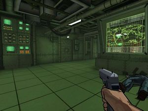 Suivez les couloirs en étant baissé, c'est là le seul moyen de ne pas vous faire repérer. Vous traverserez la passerelle suivante (photo ci-dessous à gauche).