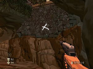 Vous arriverez à la forteresse (photo ci-dessus à droite). Montez les marches et dirigez-vous vers la droite. Vous arriverez à une chapelle. Souvenirs, souvenirs. Entrez dans la chapelle et cassez la croix située sur l'autel (photo ci-dessous à gauche).