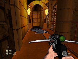 Avancez discrètement dans la forteresse pour accèder à la salle suivante (photo ci-dessous à gauche).